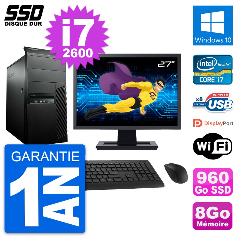 PC Tour Lenovo M91p Ecran 27" Intel i7-2600 RAM 8Go SSD 960Go Windows 10 Wifi