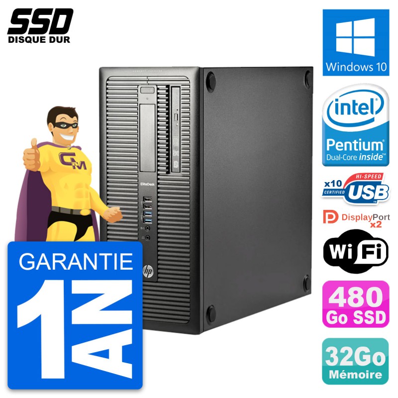 PC Tour HP EliteDesk 800 G1 - Intel Pentium G3220 3.0 Ghz (3 Mo) - 32 Go DDR3 - Disque Dur SSD 480 Go - Graveur DVD - Clef Wifi USB - Windows 10 - Garantie 1 an.