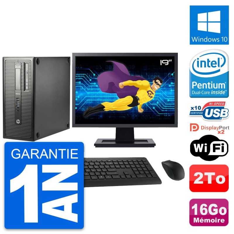 PC Tour HP EliteDesk 800 G1 - Intel Pentium G3220 3.0 Ghz (3 Mo) - 16 Go DDR3 - Disque Dur 3,5" 2 To - Graveur DVD - Clef Wifi USB - Windows 10 - Livré avec Ecran 19" + clavier + souris (Marques et modèles variables) - Garantie 1 an.