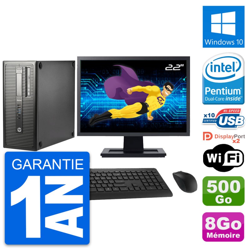 PC Tour HP 800 G1 Ecran 22" Intel G3220 RAM 8Go Disque 500Go Windows 10 Wifi