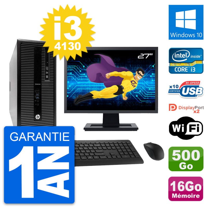 PC Tour HP 800 G1 Ecran 27" Intel i3-4130 RAM 16Go Disque 500Go Windows 10 Wifi