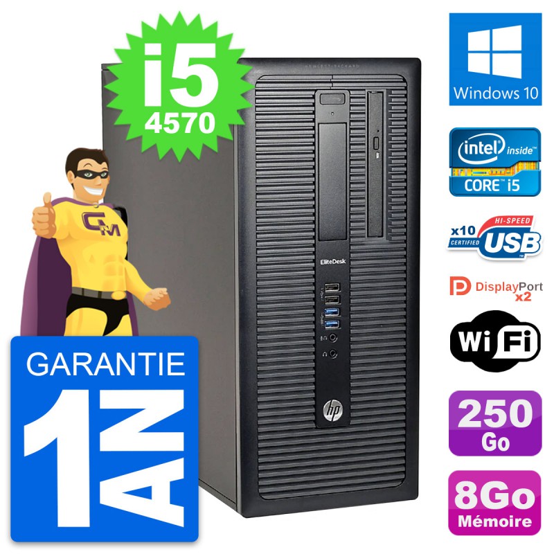 PC Tour HP EliteDesk 800 G1 Intel i5-4570 RAM 8Go Disque 250Go Windows 10 Wifi