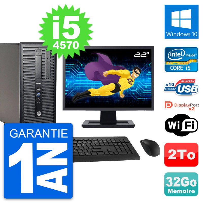 PC Tour HP 800 G1 Ecran 22" Intel i5-4570 RAM 32Go Disque 2To Windows 10 Wifi