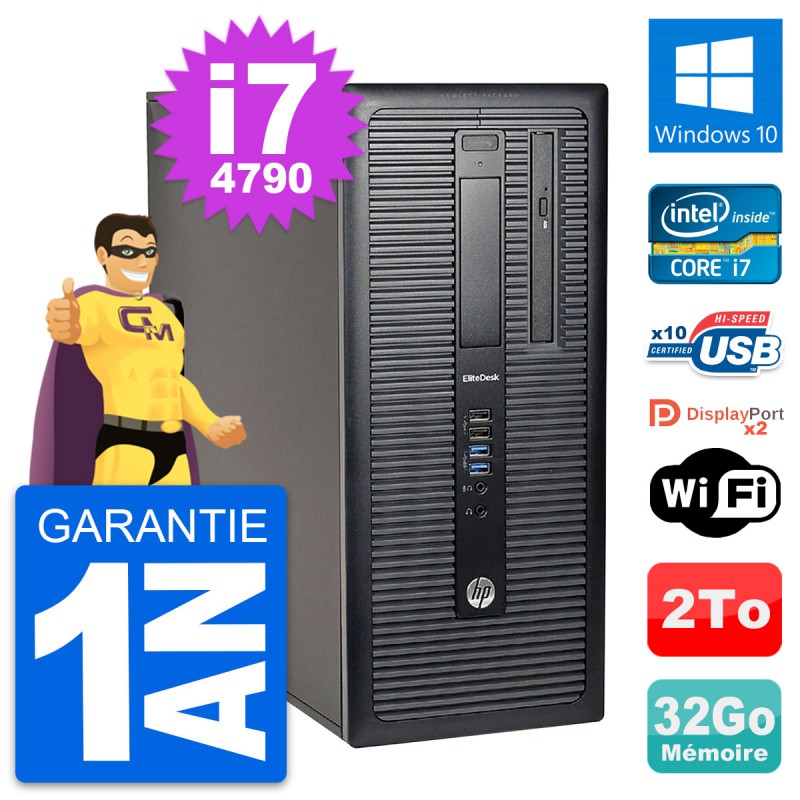 PC Tour HP EliteDesk 800 G1 - Intel Core i7-4790 3.6 Ghz (8 Mo) - 32 Go DDR3 - Disque Dur 3,5" 2 To - Graveur DVD - Clef Wifi USB - Windows 10 - Garantie 1 an.
