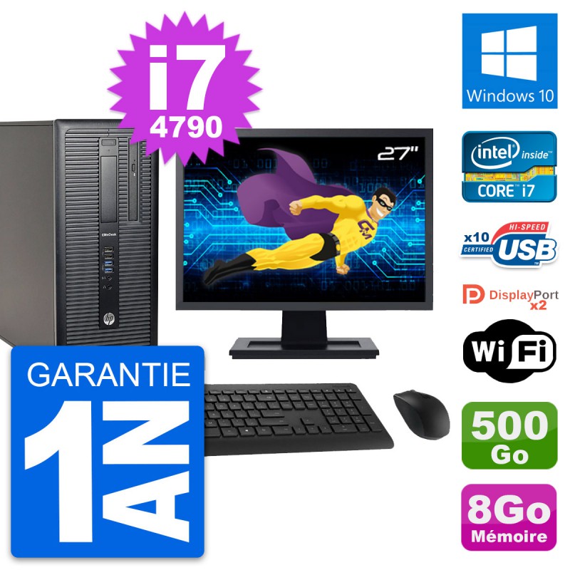 PC Tour HP 800 G1 Ecran 27" Intel i7-4790 RAM 8Go Disque 500Go Windows 10 Wifi