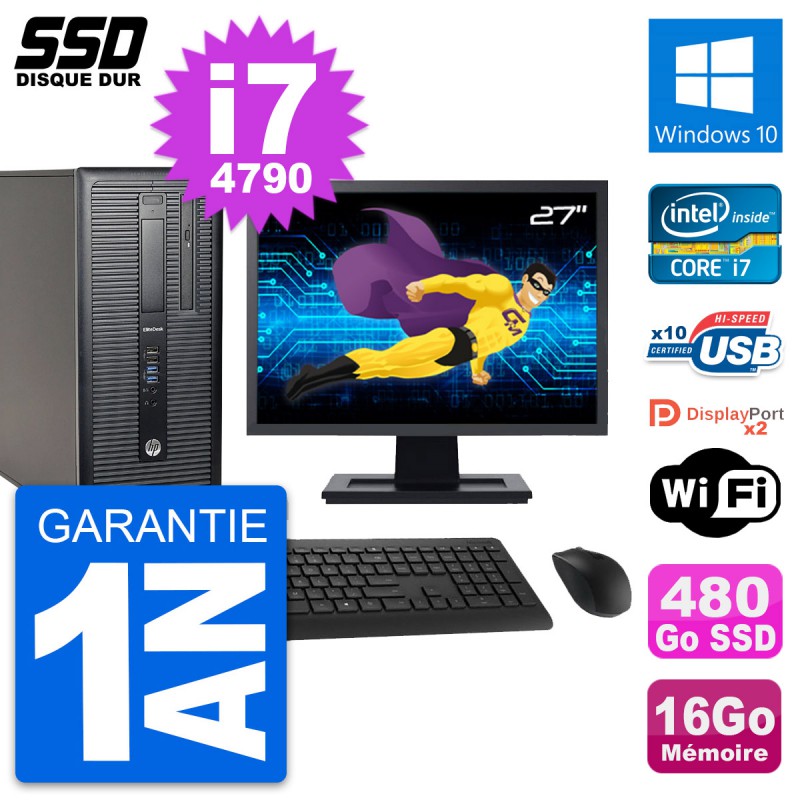 PC Tour HP EliteDesk 800 G1 Ecran 27" i7-4790 RAM 16Go SSD 480Go Windows 10 Wifi