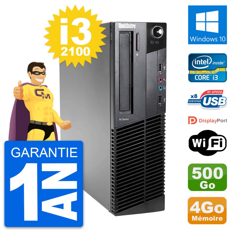 PC Lenovo ThinkCentre M82 SFF Intel i3-2100 RAM 4Go Disque 500Go Windows 10 Wifi