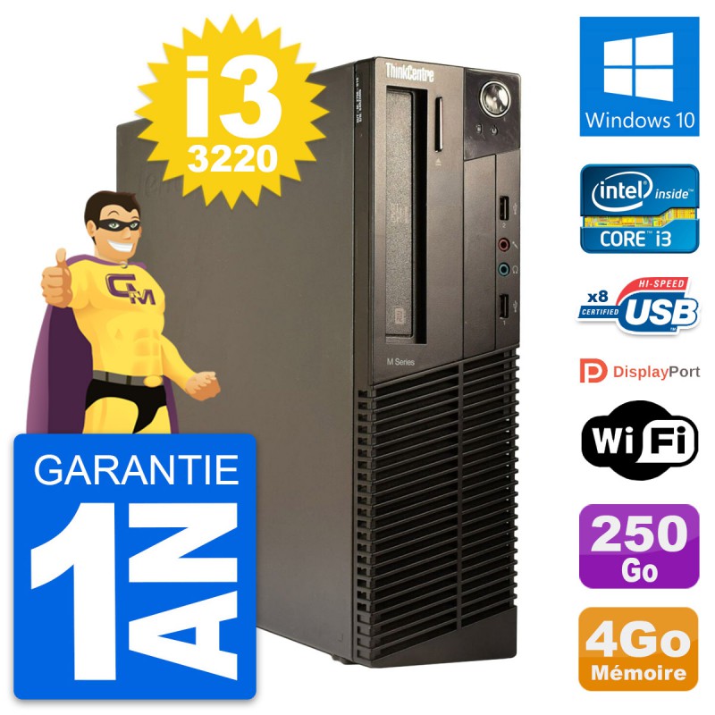 PC Lenovo ThinkCentre M82 SFF Intel i3-3220 RAM 4Go Disque 250Go Windows 10 Wifi