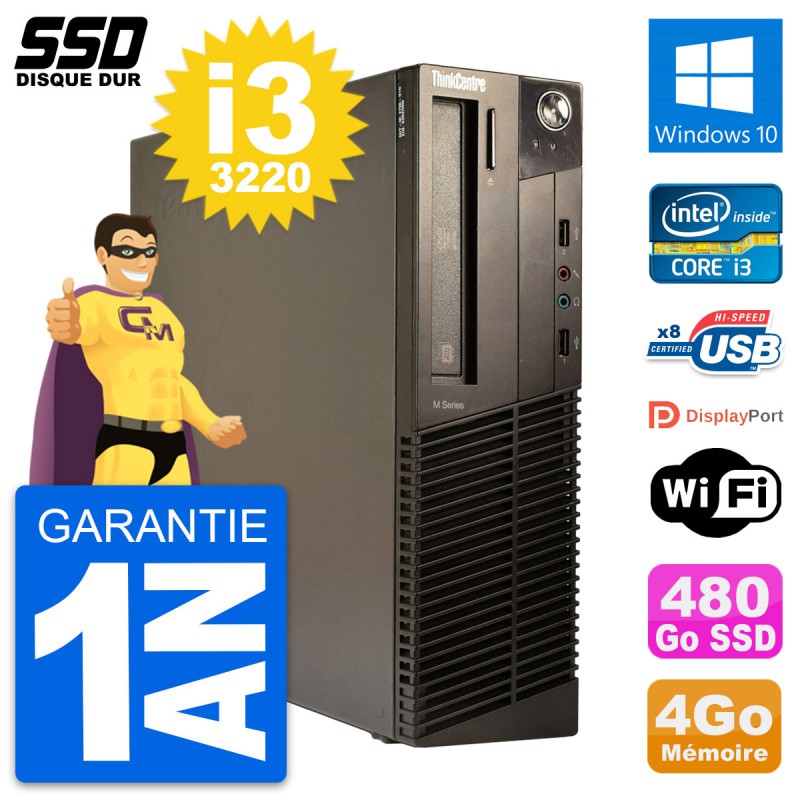 PC Lenovo ThinkCentre M82 SFF Intel i3-3220 RAM 4Go SSD 480Go Windows 10 Wifi