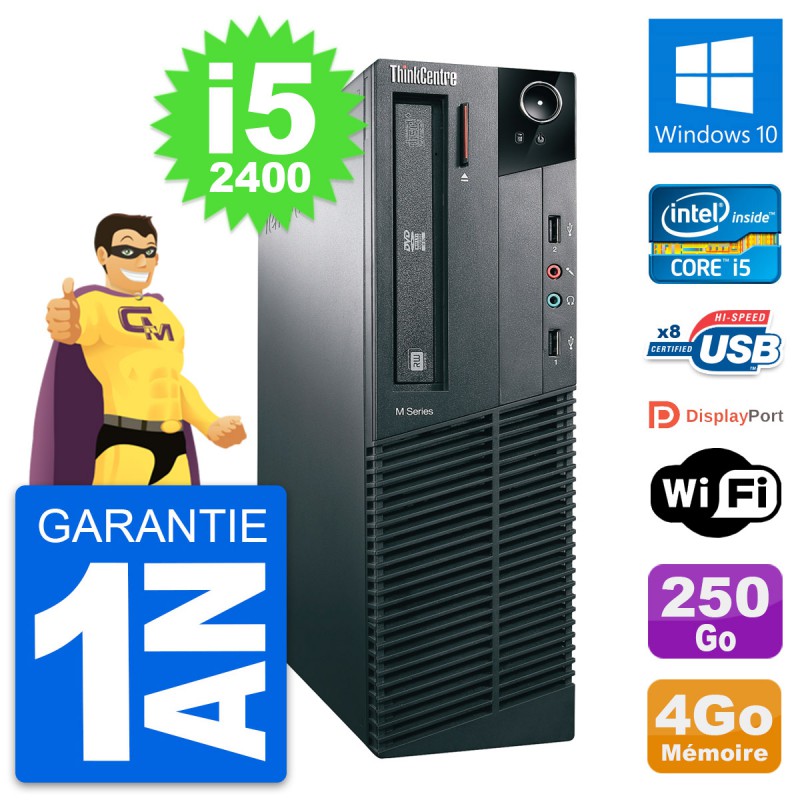 PC Lenovo ThinkCentre M82 SFF Intel i5-2400 RAM 4Go Disque 250Go Windows 10 Wifi