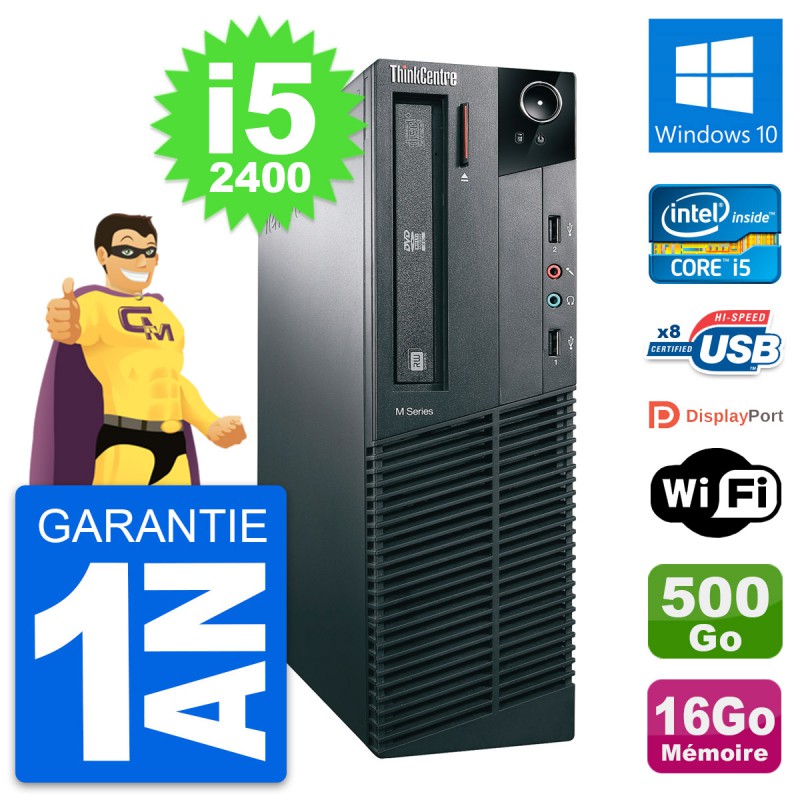 PC Lenovo ThinkCentre M82 SFF Core i5-2400 RAM 16Go Disque 500Go Windows 10 Wifi