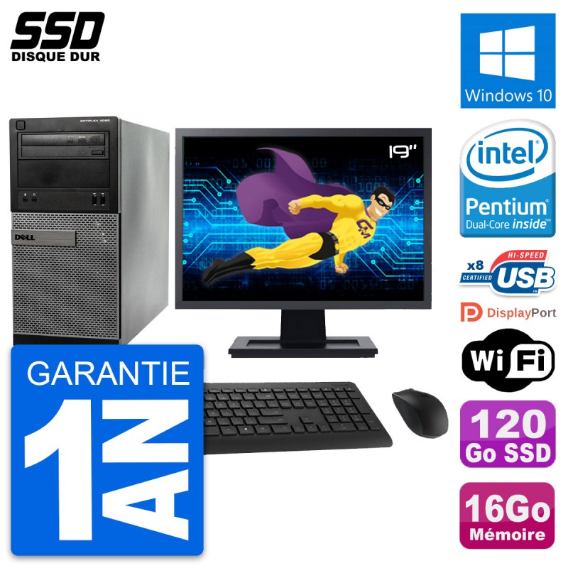 PC Tour Dell 3020 SFF - Intel Pentium G3220 3.0 Ghz (3 Mo) - 16 Go DDR3 - Disque Dur SSD 120 Go - Graveur DVD - Clef Wifi USB - Windows 10 - Livré avec Ecran 19" + clavier + souris (Marques et modèles variables) - Garantie 1 an.