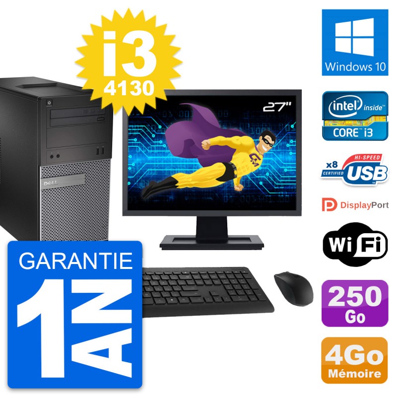 PC Tour Dell 3020 Ecran 27" Intel i3-4130 RAM 4Go Disque 250Go Windows 10 Wifi