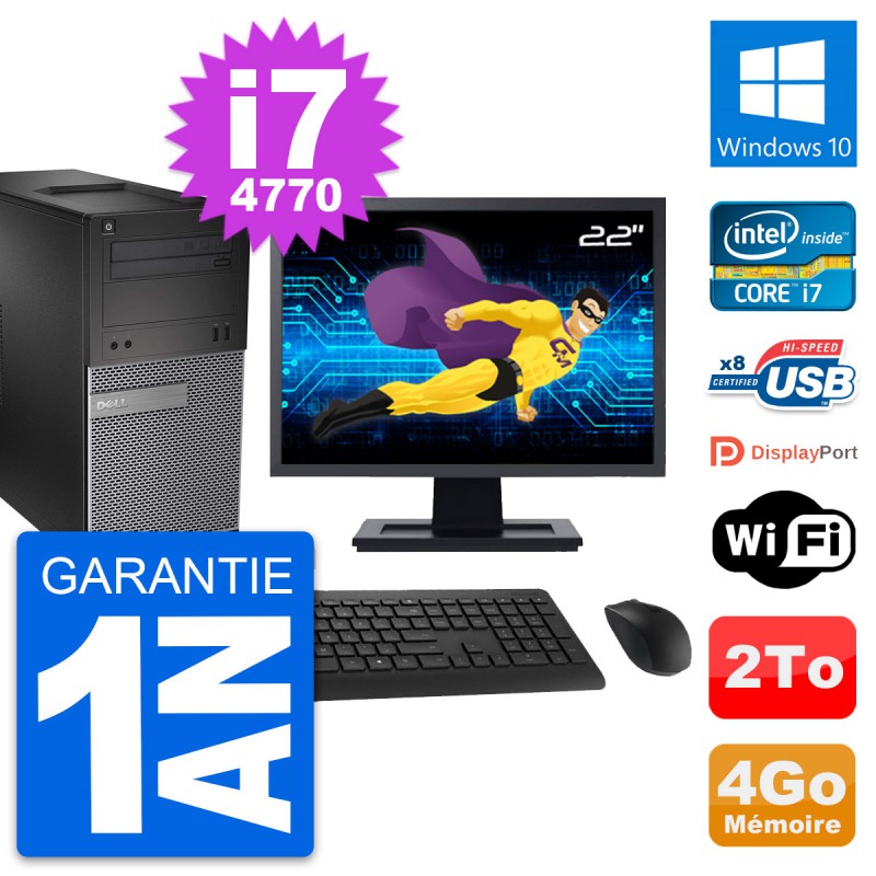 PC Tour Dell 3020 Ecran 22" Intel i7-4770 RAM 4Go Disque 2To Windows 10 Wifi