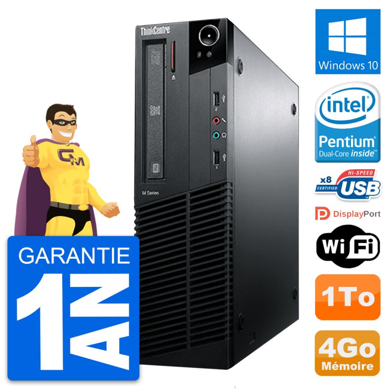 PC Lenovo ThinkCentre M81 SFF - Intel Pentium G630 2.7 Ghz (3 Mo) - 4 Go DDR3 - Disque Dur 3,5" 1 To - Graveur DVD - Clef Wifi USB - Windows 10 - Garantie 1 an.