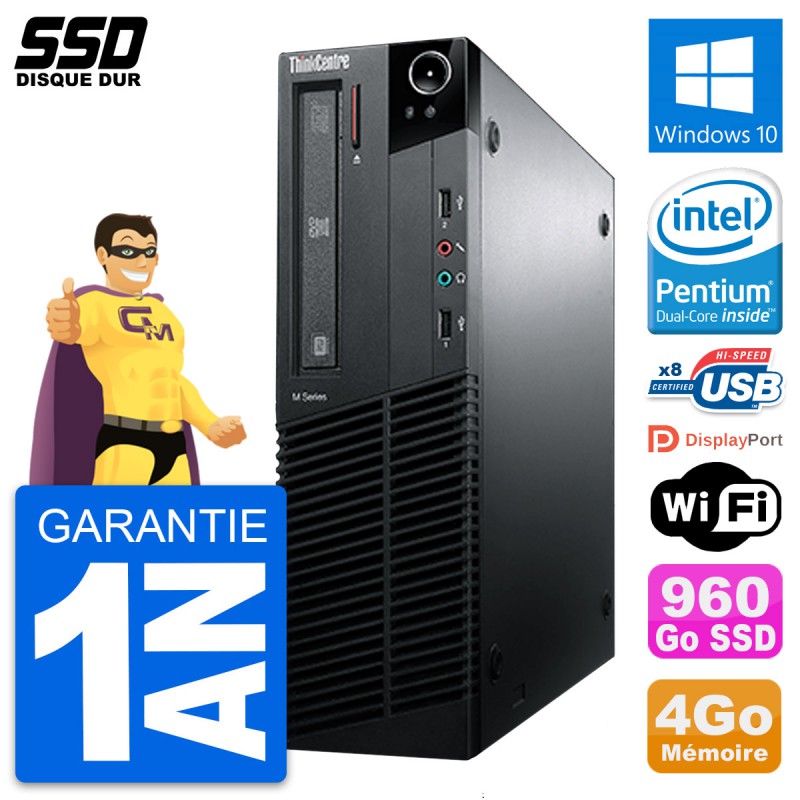 PC Lenovo ThinkCentre M81 SFF - Intel Pentium G630 2.7 Ghz (3 Mo) - 4 Go DDR3 - Disque Dur SSD 960 Go - Graveur DVD - Clef Wifi USB - Windows 10 - Garantie 1 an.