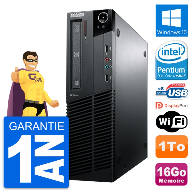 PC Lenovo ThinkCentre M81 SFF - Intel Pentium G630 2.7 Ghz (3 Mo) - 16 Go DDR3 - Disque Dur 3,5" 1 To - Graveur DVD - Clef Wifi USB - Windows 10 - Garantie 1 an.