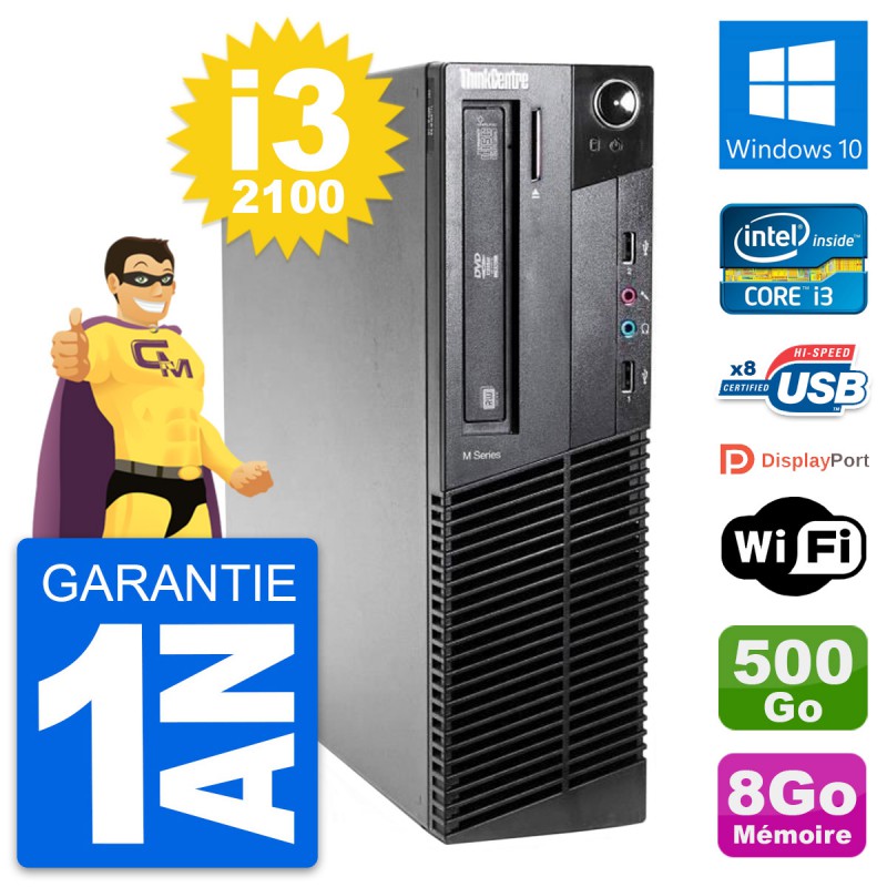 PC Lenovo ThinkCentre M81 SFF Intel i3-2100 RAM 8Go Disque 500Go Windows 10 Wifi