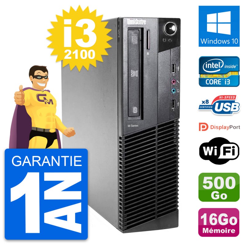 PC Lenovo ThinkCentre M81 SFF Core i3-2100 RAM 16Go Disque 500Go Windows 10 Wifi