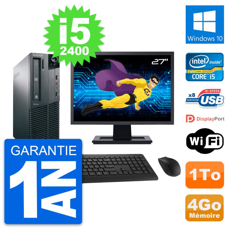 PC Lenovo M81 SFF Ecran 27" Intel i5-2400 RAM 4Go Disque Dur 1To Windows 10 Wifi