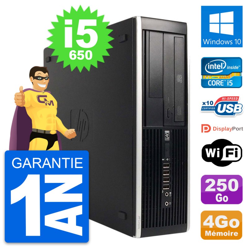 PC HP 8100 Elite SFF - Intel Core i5-650 3.2 Ghz (4 Mo) - 4 Go DDR3 - Disque Dur 3,5" 250 Go - Graveur DVD - Clef Wifi USB - Windows 10 - Garantie 1 an.
