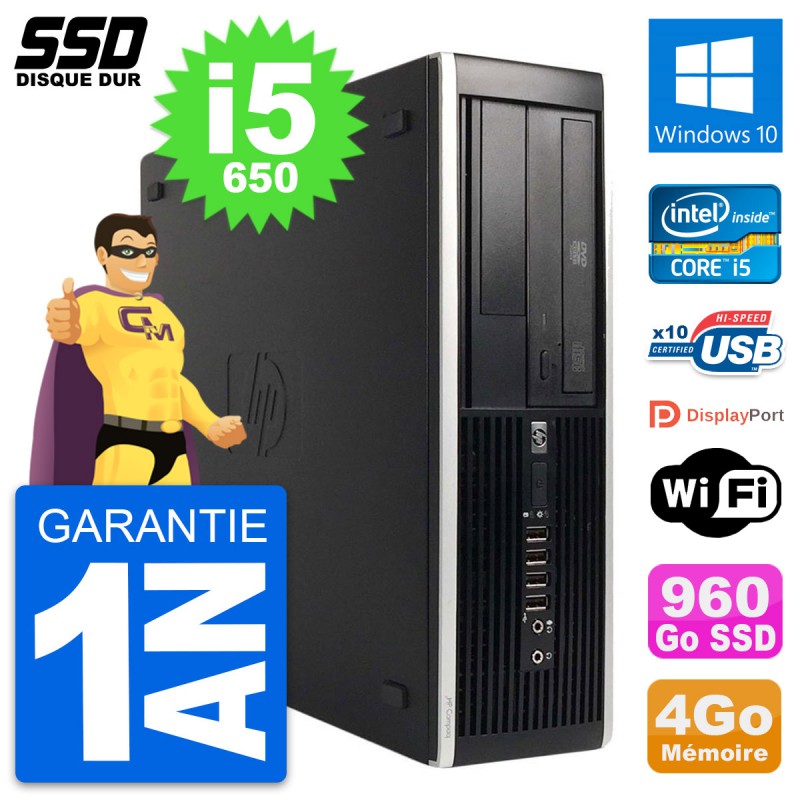 PC HP 8100 Elite SFF Intel Core i5-650 RAM 4Go SSD 960Go Windows 10 Wifi