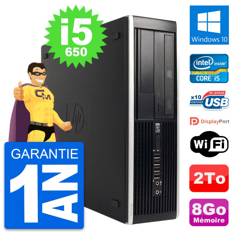 PC HP 8100 Elite SFF Intel Core i5-650 RAM 8Go Disque Dur 2To Windows 10 Wifi
