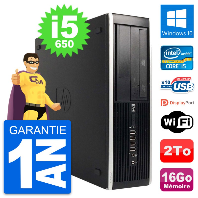 PC HP 8100 Elite SFF Intel Core i5-650 RAM 16Go Disque Dur 2To Windows 10 Wifi