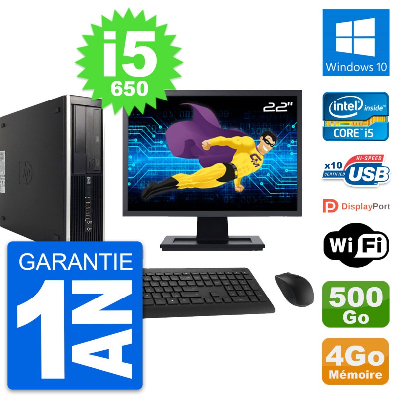 PC HP 8100 Elite SFF Ecran 22" Core i5-650 RAM 4Go Disque 500Go Windows 10 Wifi