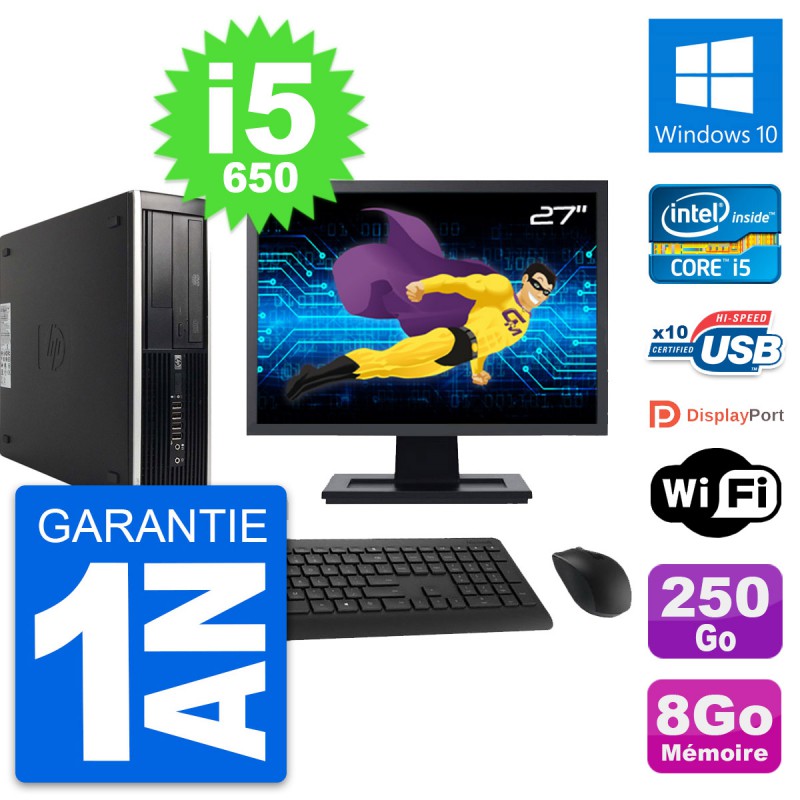 PC HP 8100 Elite SFF Ecran 27" Core i5-650 RAM 8Go Disque 250Go Windows 10 Wifi