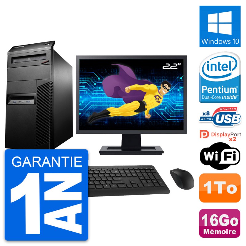 PC Tour Lenovo ThinkCentre M93p MT - Intel Pentium G3220 3.0 Ghz (3 Mo) - 16 Go DDR3 - Disque Dur 3,5" 1 To - Graveur DVD - Clef Wifi USB - Windows 10 - Livré avec Ecran 22" + clavier + souris (Marques et modèles variables) - Garantie 1 an.