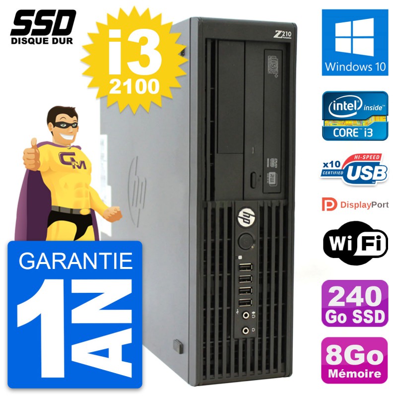 PC HP WorkStation Z210 SFF Intel Core i3-2100 RAM 8Go SSD 240Go Windows 10 Wifi