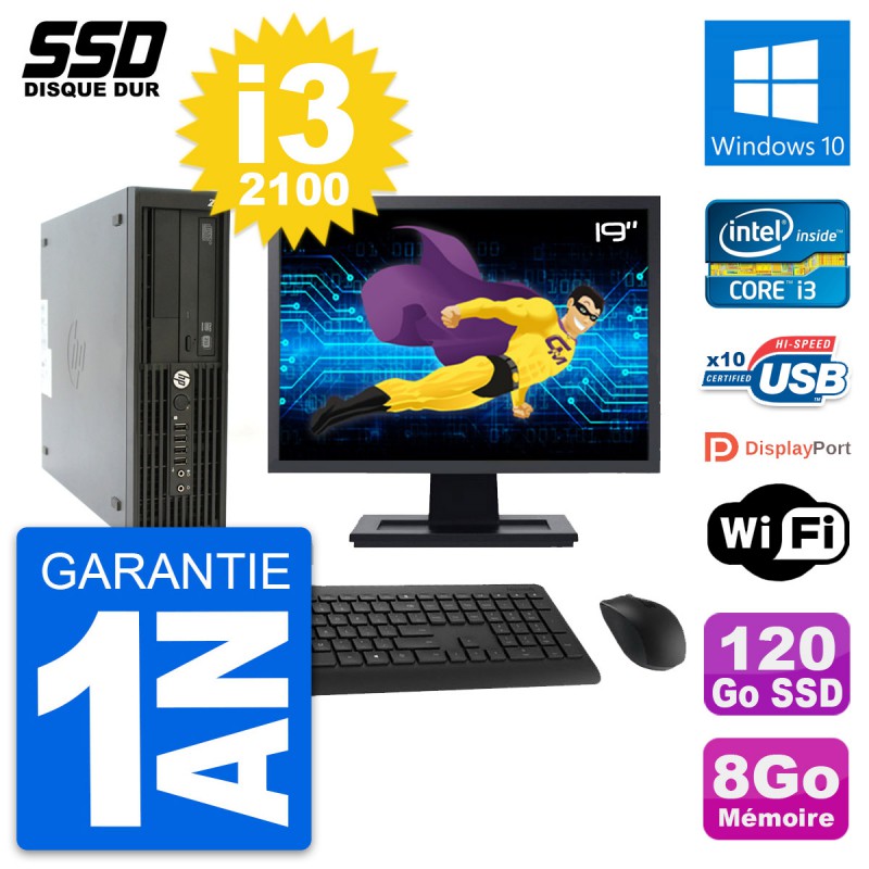 PC HP Z210 SFF Ecran 19" Intel Core i3-2100 RAM 8Go SSD 120Go Windows 10 Wifi