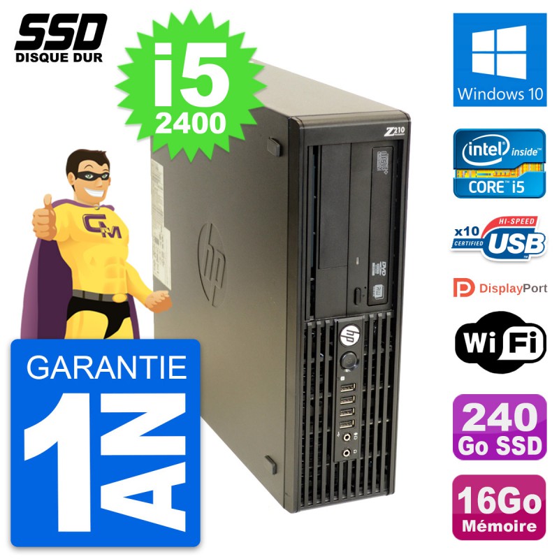 PC HP WorkStation Z210 SFF Intel i5-2400 RAM 16Go SSD 240Go Windows 10 Wifi