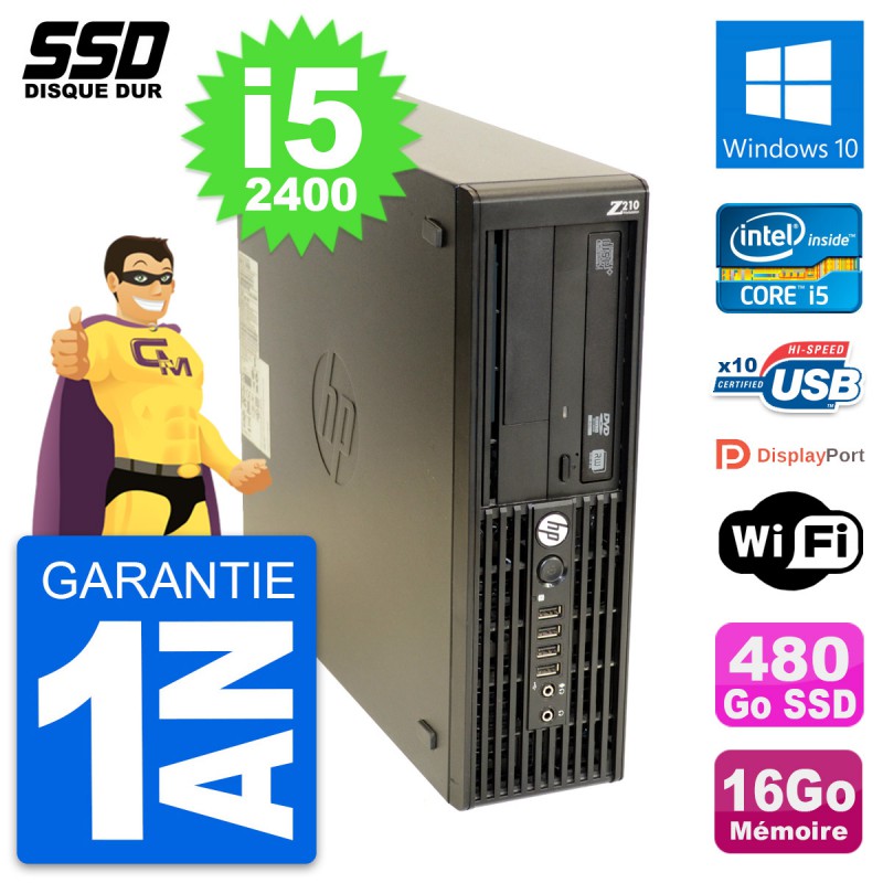PC HP WorkStation Z210 SFF Intel i5-2400 RAM 16Go SSD 480Go Windows 10 Wifi