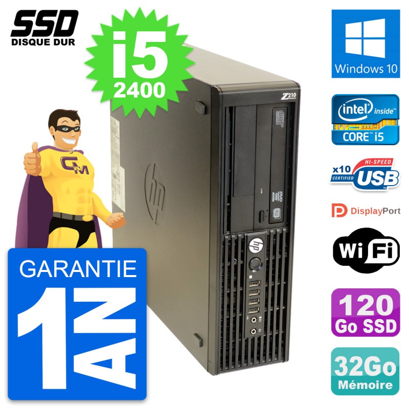 PC HP WorkStation Z210 SFF Intel i5-2400 RAM 32Go SSD 120Go Windows 10 Wifi