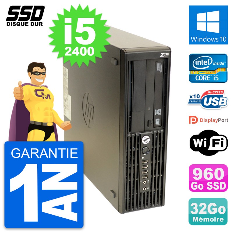 PC HP WorkStation Z210 SFF Intel i5-2400 RAM 32Go SSD 960Go Windows 10 Wifi