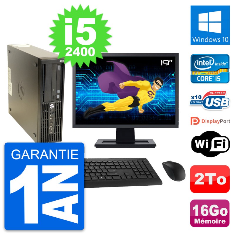 PC HP Z210 SFF Ecran 19" Intel Core i5-2400 RAM 16Go Disque 2To Windows 10 Wifi