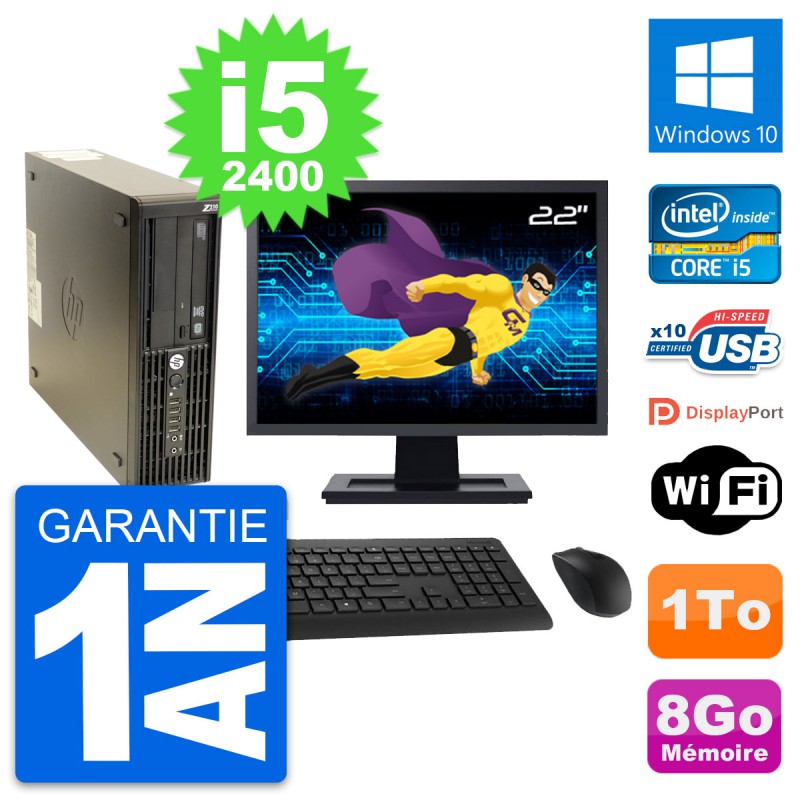 PC HP Z210 SFF Ecran 22" Intel Core i5-2400 RAM 8Go Disque 1To Windows 10 Wifi