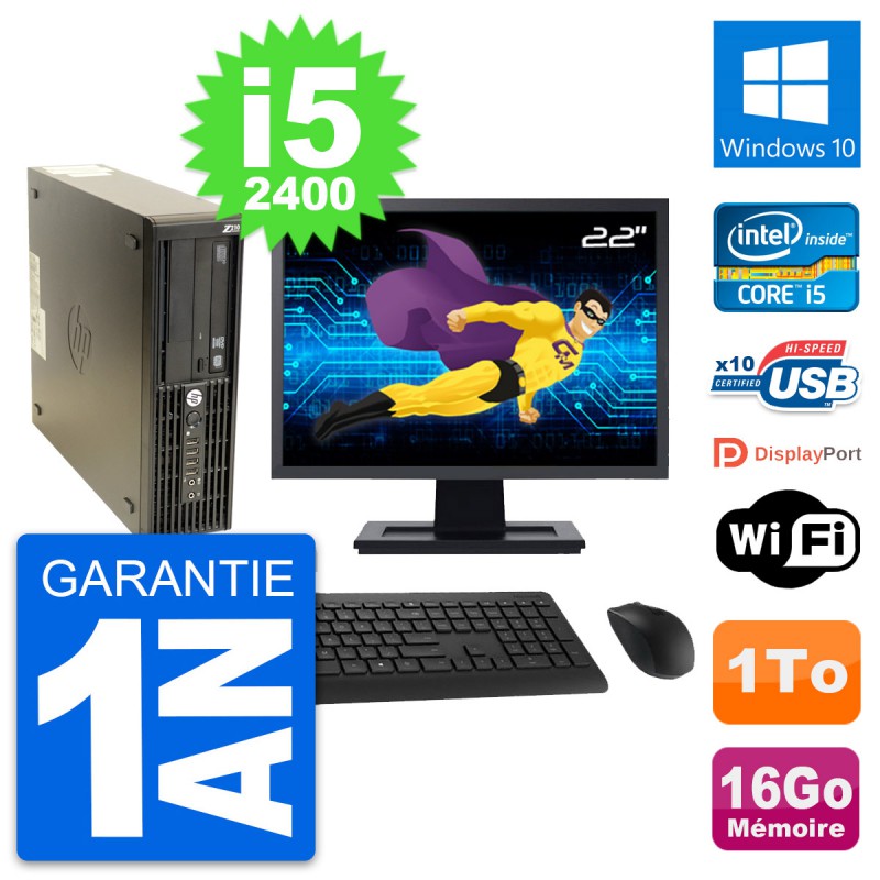 PC HP Z210 SFF Ecran 22" Intel Core i5-2400 RAM 16Go Disque 1To Windows 10 Wifi