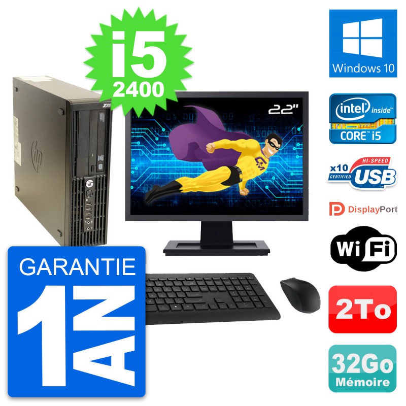 PC HP Z210 SFF Ecran 22" Intel Core i5-2400 RAM 32Go Disque 2To Windows 10 Wifi
