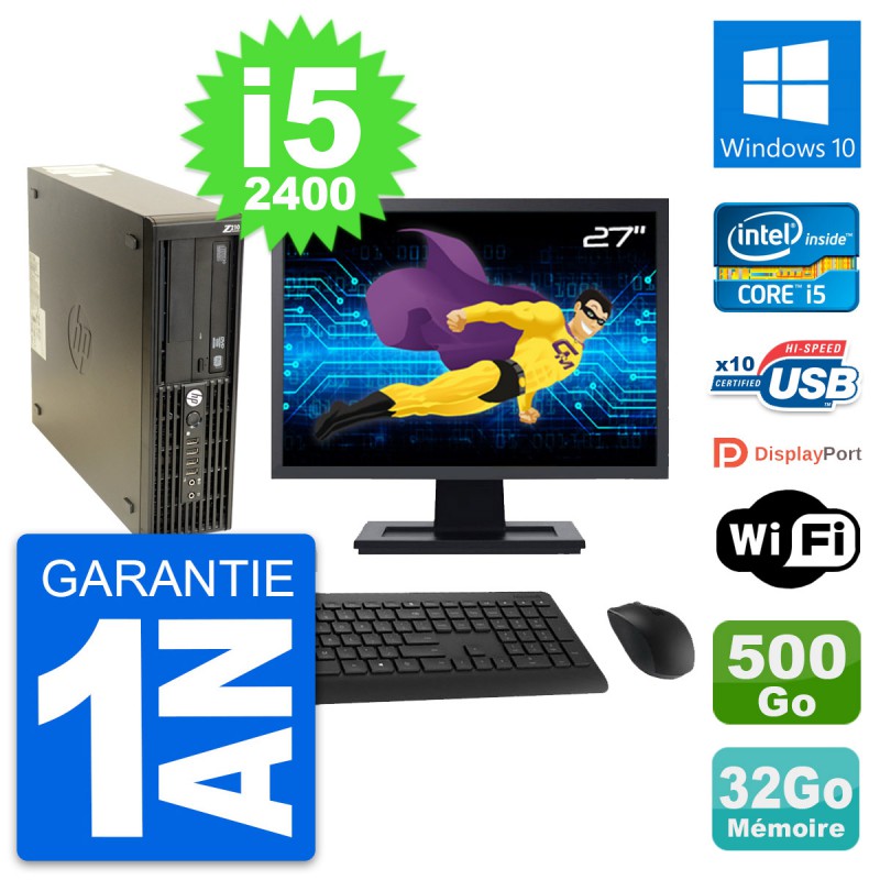 PC HP Z210 SFF Ecran 27" Intel i5-2400 RAM 32Go Disque 500Go Windows 10 Wifi
