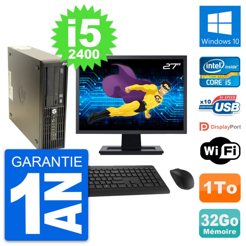 PC HP Z210 SFF Ecran 27" Intel Core i5-2400 RAM 32Go Disque 1To Windows 10 Wifi