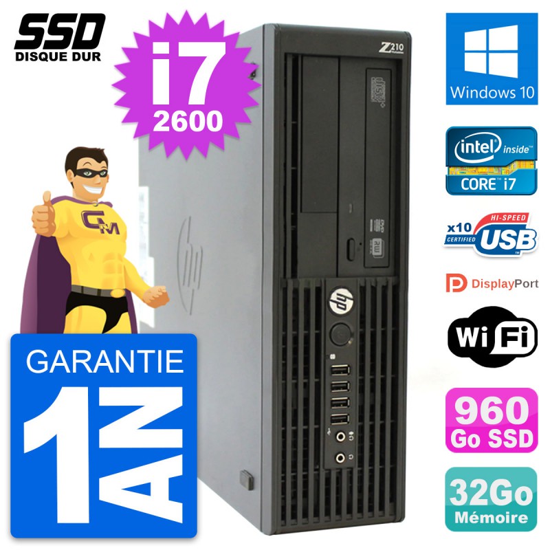 PC HP WorkStation Z210 SFF Intel i7-2600 RAM 32Go SSD 960Go Windows 10 Wifi