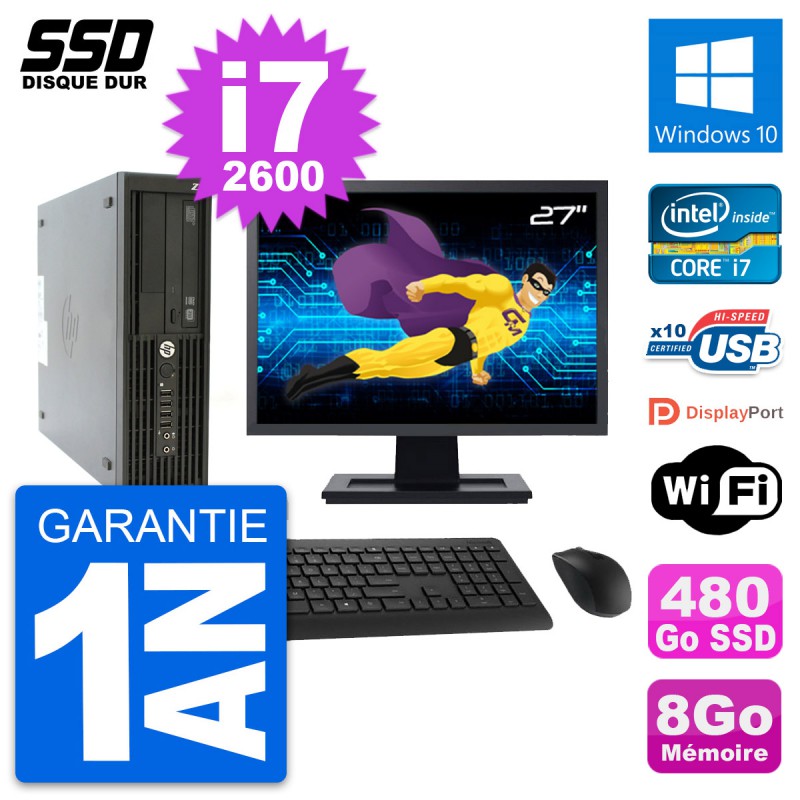PC HP Z210 SFF Ecran 27" Intel Core i7-2600 RAM 8Go SSD 480Go Windows 10 Wifi