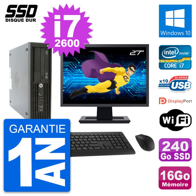 PC HP Z210 SFF Ecran 27" Intel Core i7-2600 RAM 16Go SSD 240Go Windows 10 Wifi