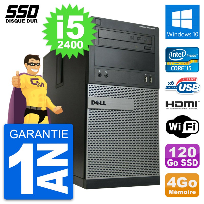 PC Tour Dell OptiPlex 390 - Intel Core i5-2400 3.1 Ghz (6 Mo) - 4 Go DDR3 - Disque Dur SSD 120 Go - Graveur DVD - Clef Wifi USB - Windows 10 - Garantie 1 an.