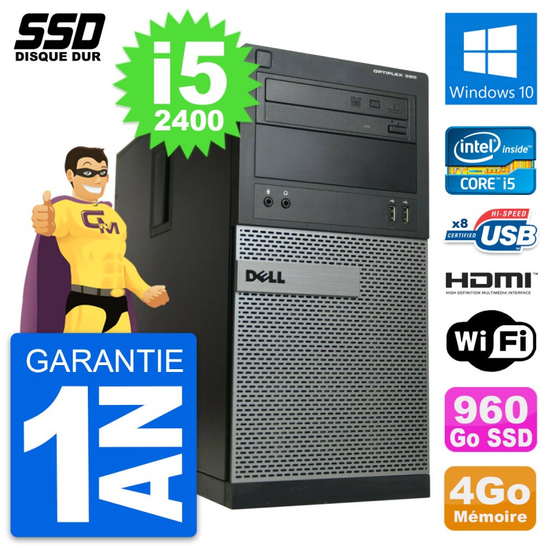 PC Tour Dell OptiPlex 390 MT Core i5-2400 RAM 4Go SSD 960Go HDMI Windows 10 Wifi