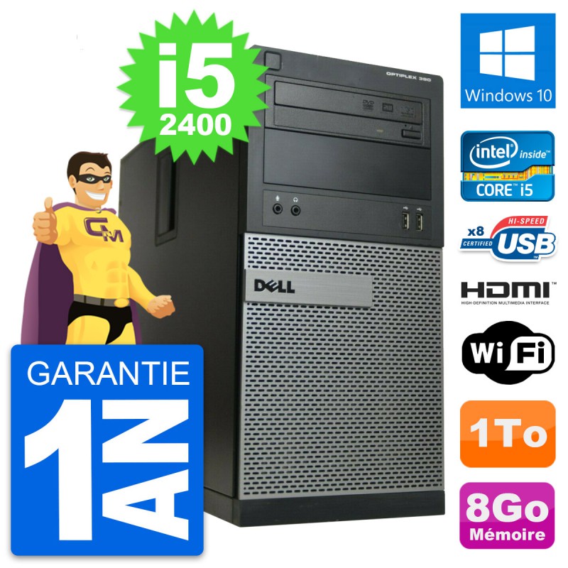 PC Tour Dell OptiPlex 390 MT i5-2400 RAM 8Go Disque 1To HDMI Windows 10 Wifi