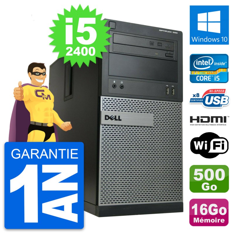 PC Tour Dell OptiPlex 390 MT i5-2400 RAM 16Go Disque 500Go HDMI Windows 10 Wifi